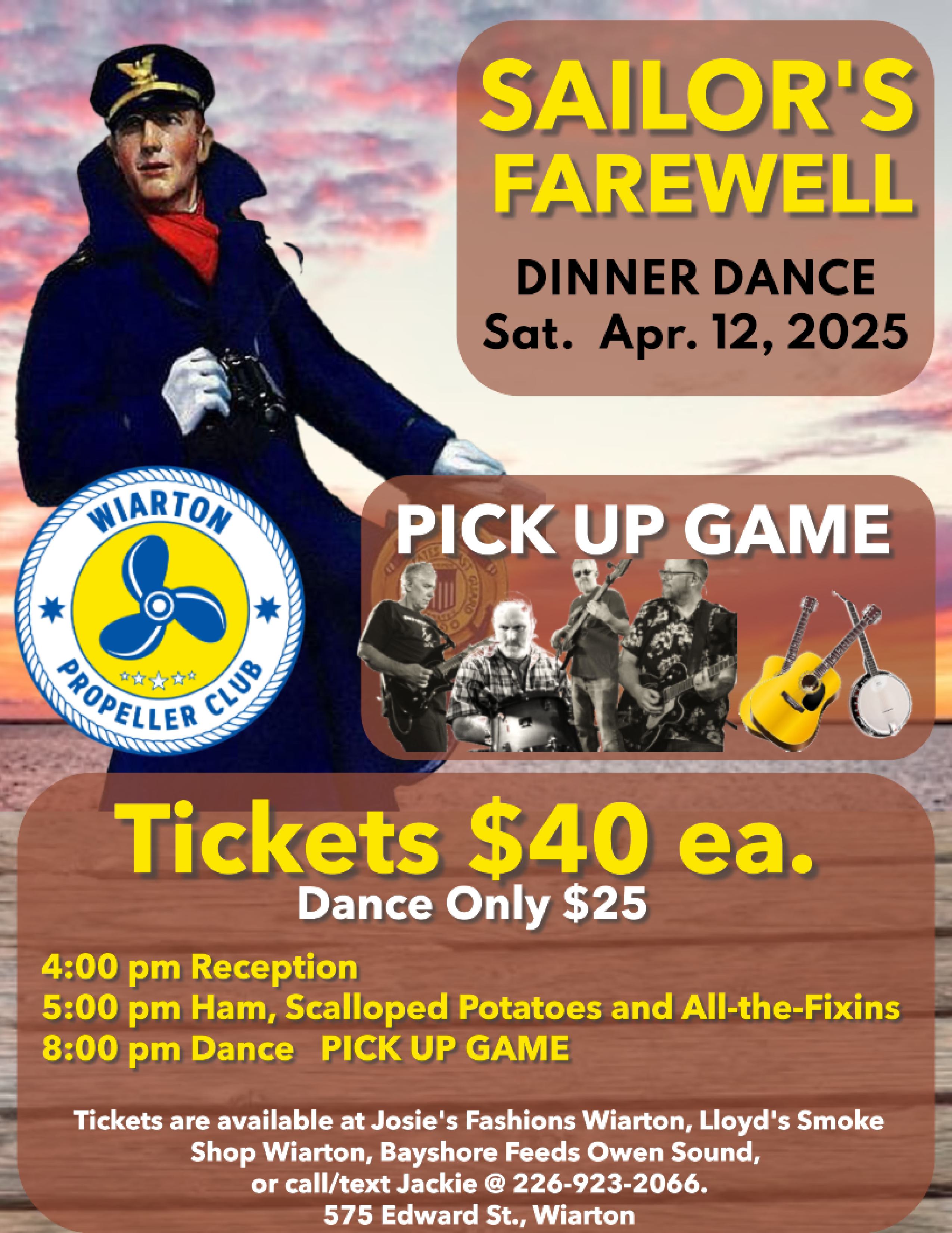 Tickets available at Josie's Fashions, Lloyd's Smoke Shop and Bayshore Feeds in Owen Sound